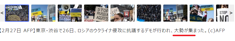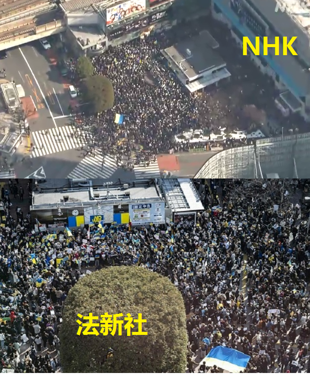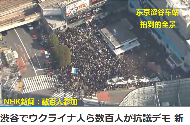 NHK报道版:旅日乌克兰人等,数百人参加集会。直接给了空中俯拍全景。