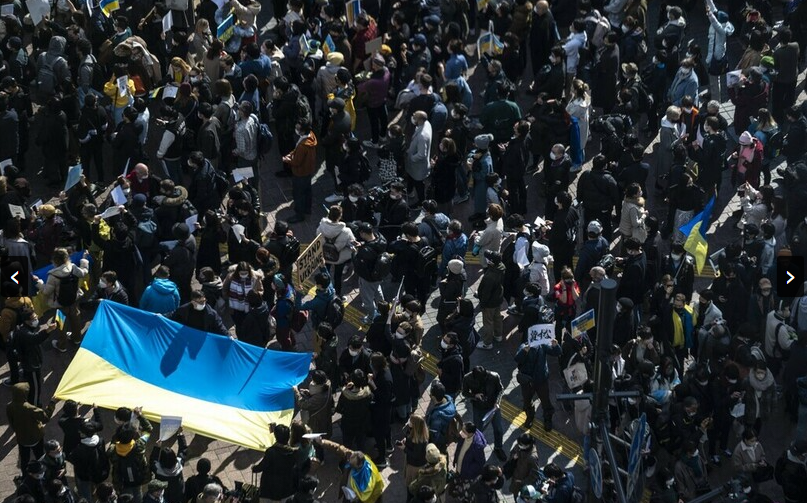 2月26日,东京涩谷搞了声援乌克兰,呼唤和平的集会。