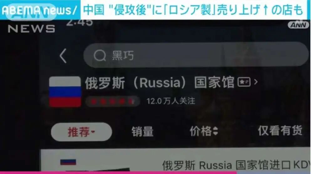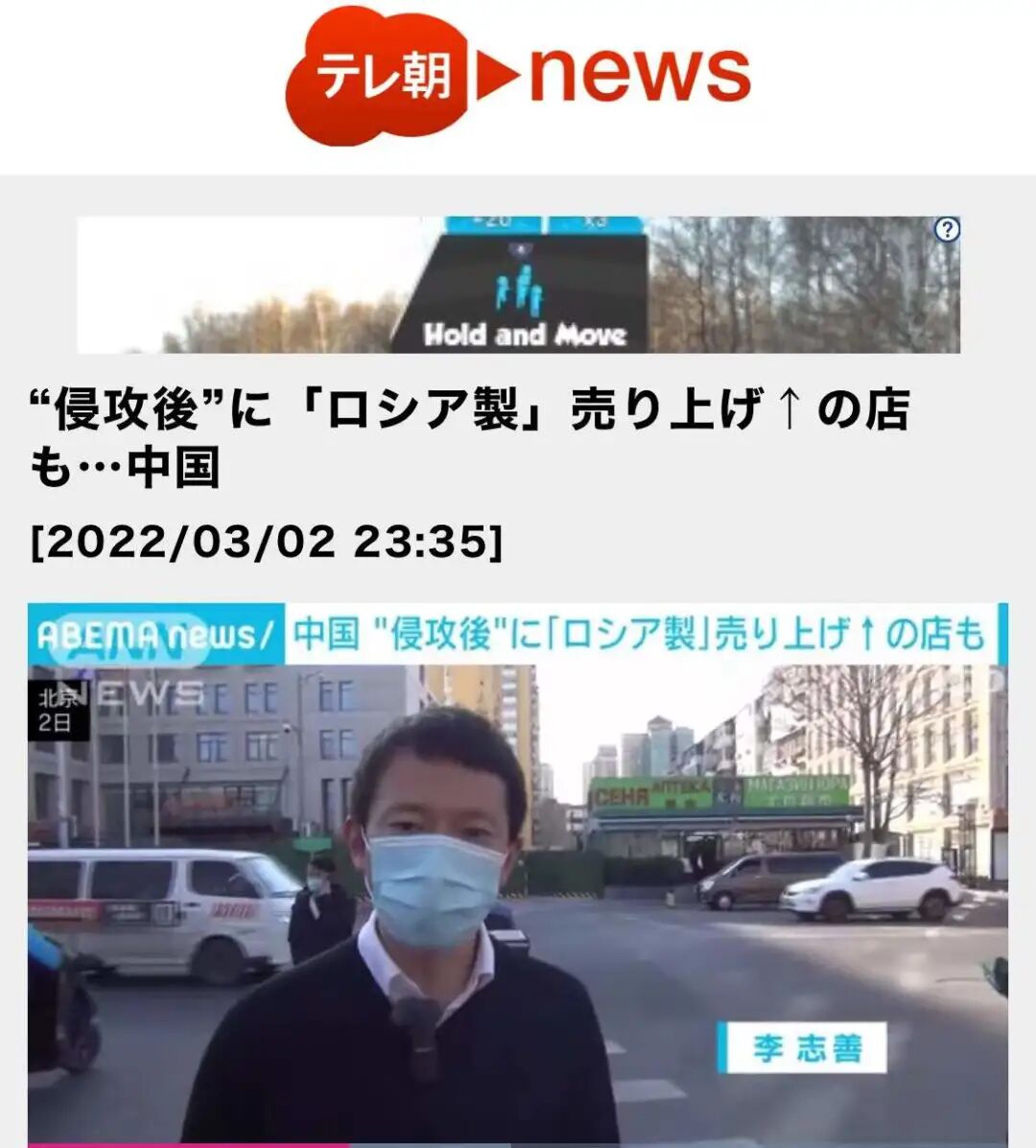 巧的是,就在“红场”老板发推的当天晚上,日本朝日电视台报道了一条新闻:俄罗斯“侵略攻击”乌克兰之后,在中国的有些商店里,俄罗斯产的商品销售额还上涨了。
