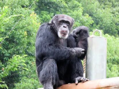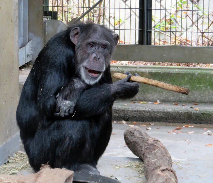 在小樱来的那一年,还有一头雄性黑猩猩,37岁的凯也搬来多摩动物园。