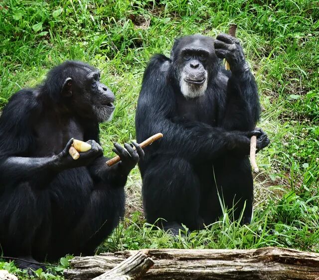 一般的成年黑猩猩,对食物有着强烈的独占欲,而德基的性格里有着独特的大方宽容。只要跟它撒娇讨要,它连自己喜欢吃的东西都舍得送给对方。
