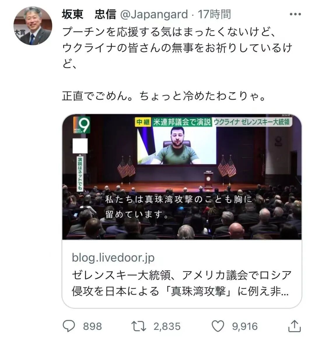 无法赞同攻击平民,但泽连斯基这么到处撺掇,把全世界都卷进来打仗的话,会牺牲更多生命。而且对日本而言,从中又不存在本国利益。