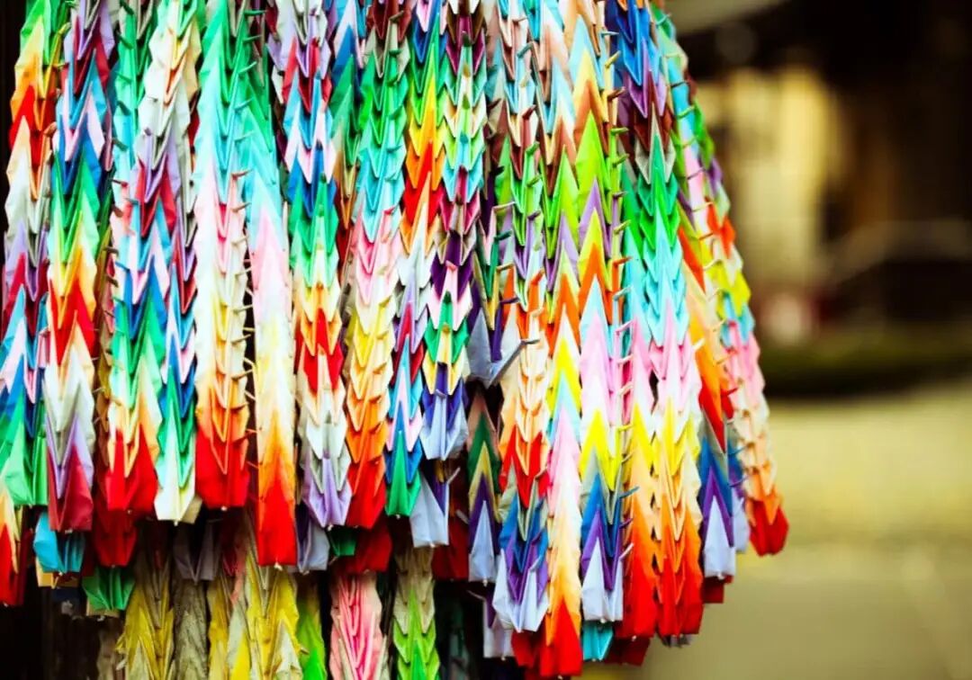 这个习惯一直保持至今。广岛的和平纪念公园里,设有专门悬挂千纸鹤的地方。每年都有来自全日本各地的千纸鹤。