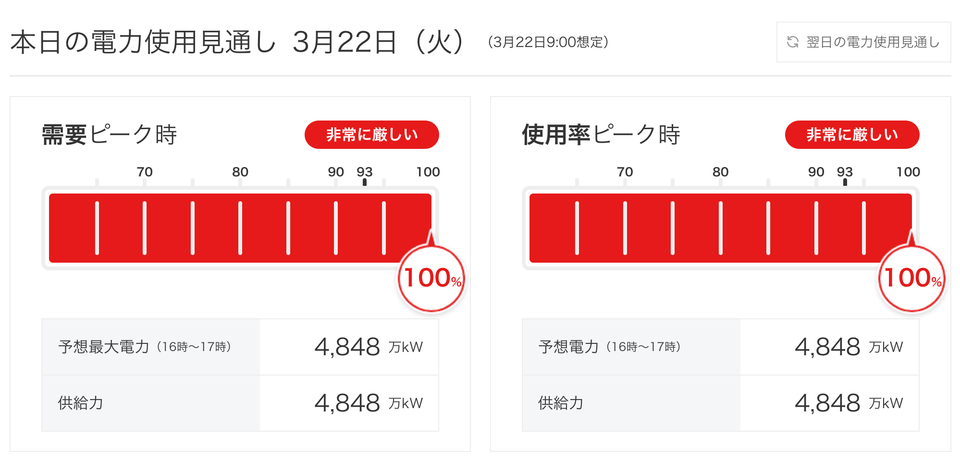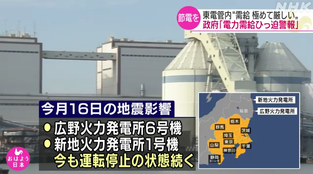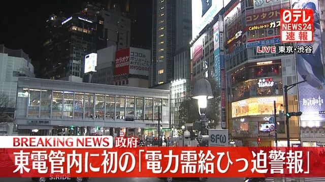 3月21日傍晚,经济产业省首次发出“电力需求逼迫警报”。