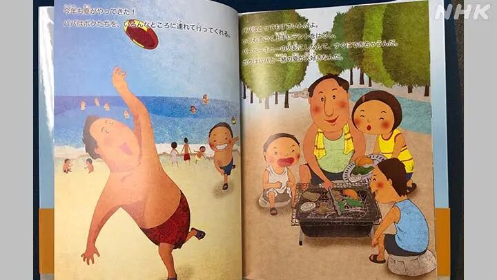 “每年夏天,爸爸会带着我和哥哥、妈妈去海边游泳,去野营烧烤。我喜欢和爸爸在一起的夏天。”