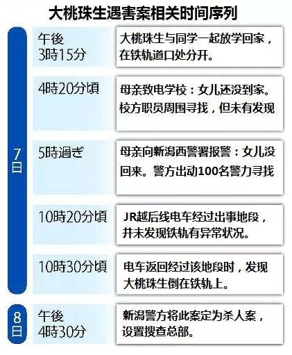 在新潟市立小针小学就读二年级的大桃珠生,像往常一样和同学一起放学,在叉路口道别,各自往家回。但这天,7岁的小女孩却没能像往常一样回到自己家。