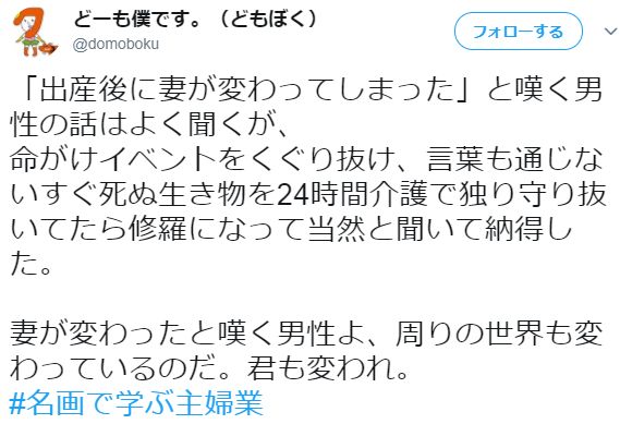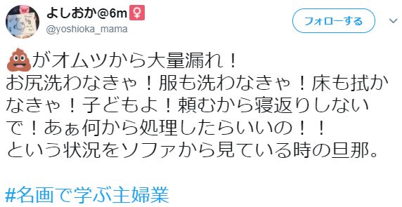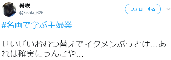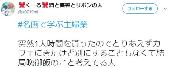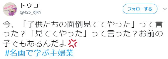 日推上有一个爆火词条#名画で学ぶ主婦業#(跟名画学习主妇业),用一幅大家都认识的名画,配上自编台词,一句话说明白当老婆当妈,已婚妇女,家庭主妇的日常片断。