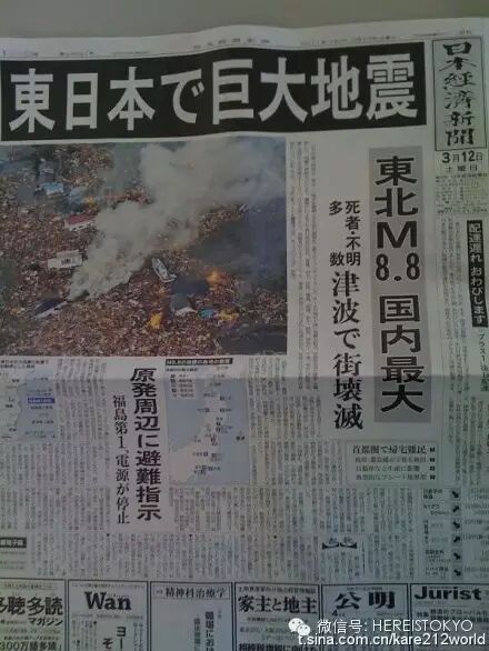 2011年3月14日写的原话:余震来不来,日子得照过。护照印章存折手电筒,装在包里,方便随时落跑。银行帐号护照编号e-mail给家里,万一的时候,方便找到我们。
