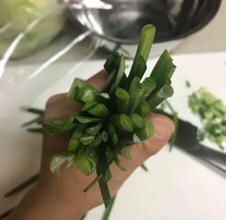 这是切出来的横切面,有没有怪异??感觉这些韭菜的味道好象也变弱了……”