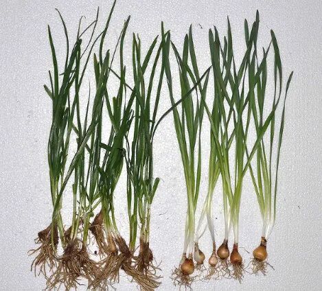 ●韭菜的横切面呈椭圆形。