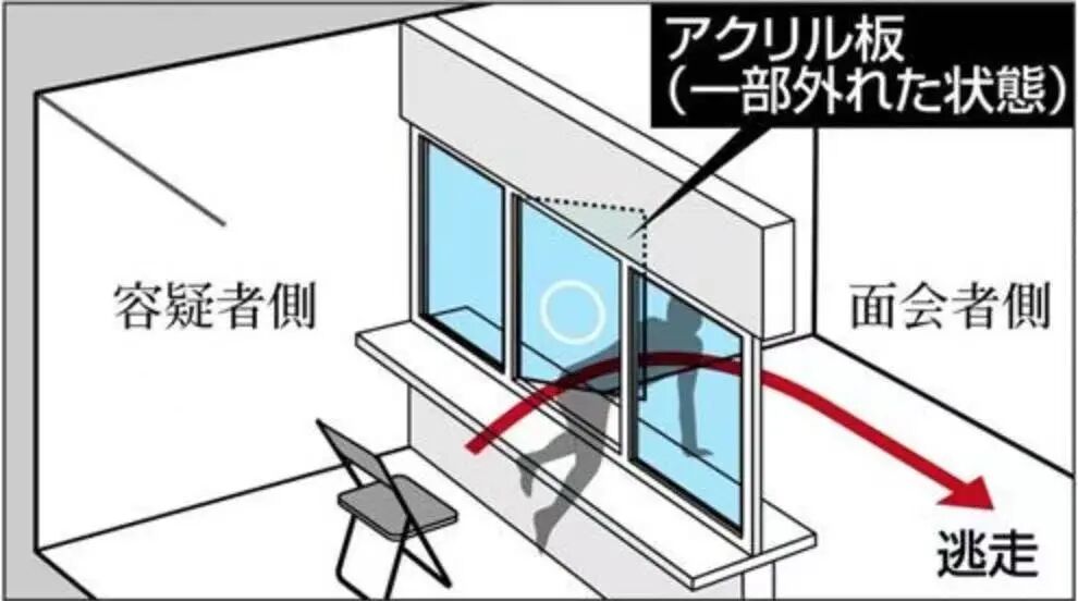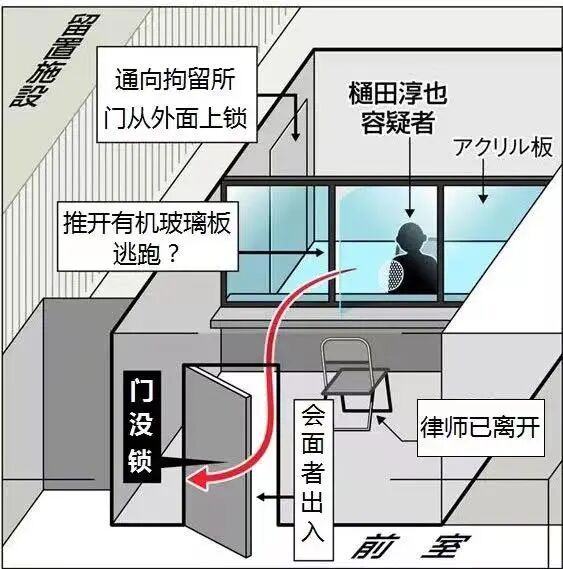 一名叫樋田淳也的嫌犯在被拘捕后,利用与辩护律师见面的机会,越狱了!