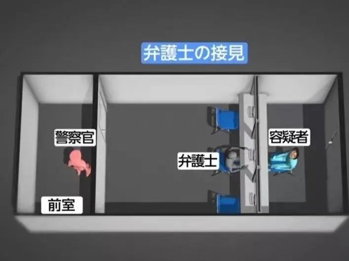 律师会面时,只安排警察在前室看着,嫌犯身旁没有警察。