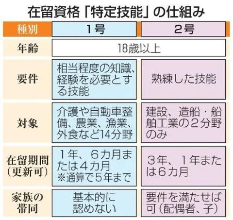 不过,日本政府的算盘打得门儿清 。特定技能分为1号和2号,只面向劳动力紧缺的16个行业开放。