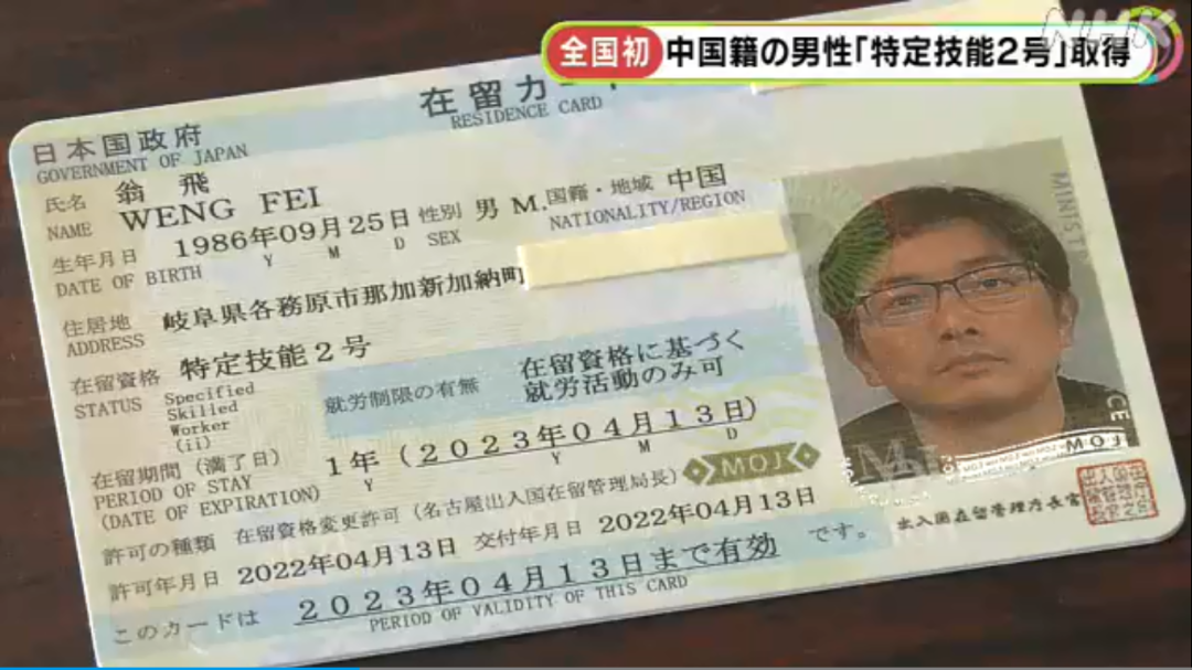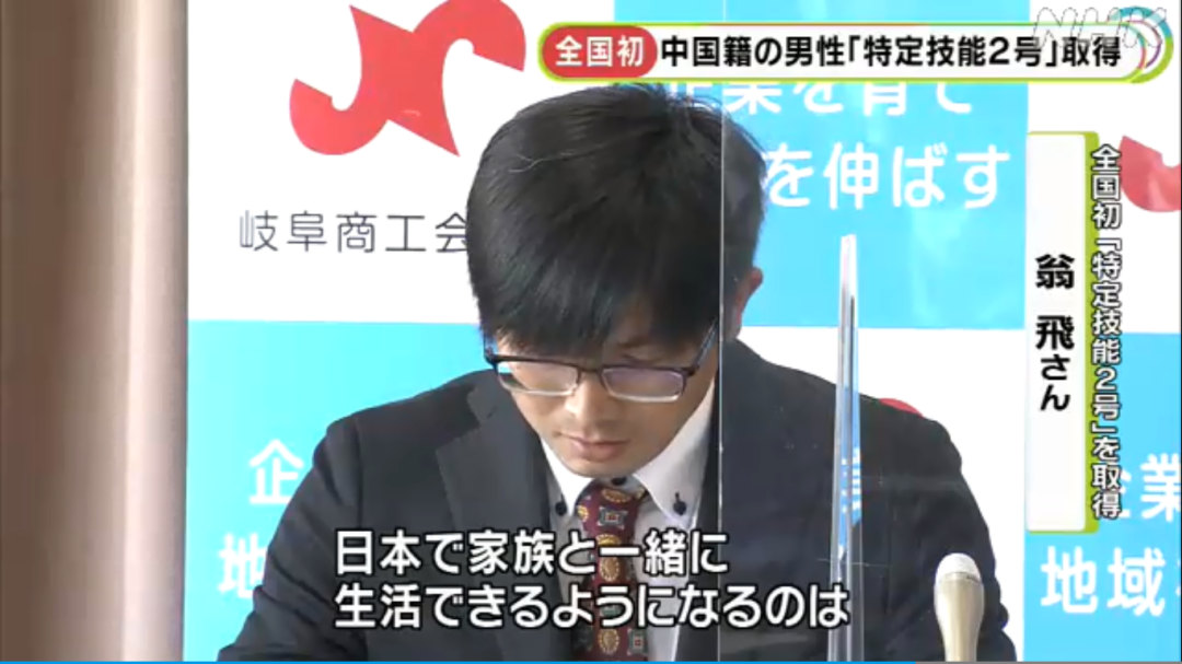 与此同时,翁飞也成为日本首个获批该签证的外国人。