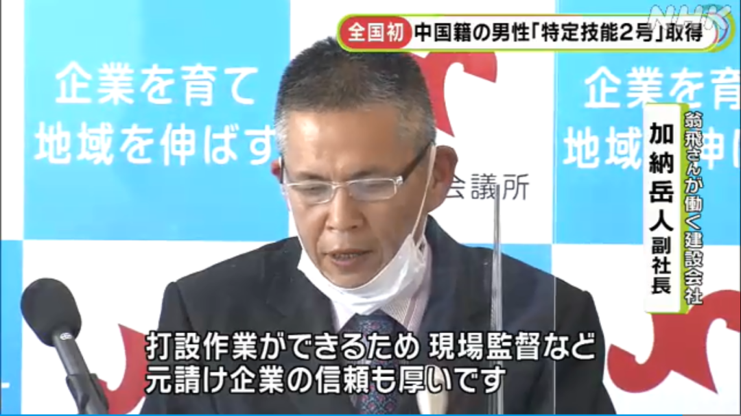 要想家人能过来,就得去申请“特定技能”签证。为了成功申请下来,他考下高难度的技术资格证,在施工现场担任责任人。