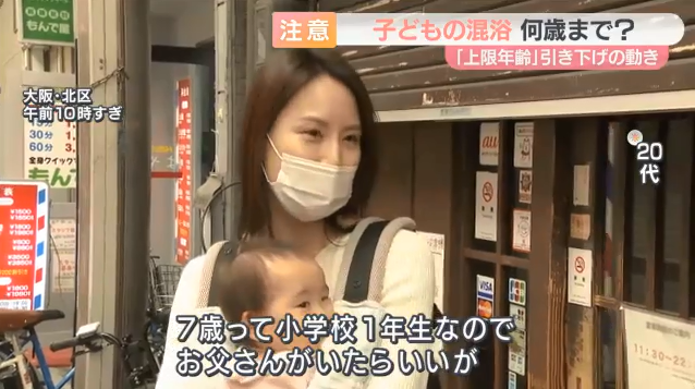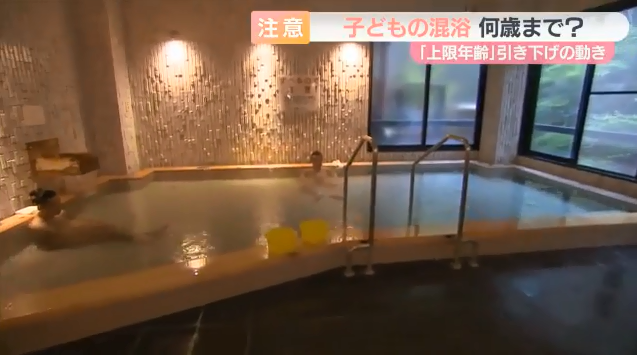 2020年,日本厚生劳动省下调了“混浴”年龄。把原来的10岁下调到7岁。即7岁以上的男孩(女孩)就不适合进女(男)浴室了。