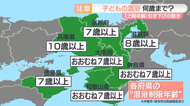 和歌山县的公共澡堂混浴年龄,从10岁下调至7岁,但该县的一家温泉澡堂又自行追加了一条规定:身高不能超过120公分。