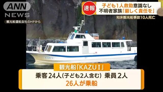 可惜,直至4月25日,已找到的11人里,10人确认死亡,其中包括一名7岁男童。船长丰田德幸(54岁),船员兽山圣(27岁)也在其中。