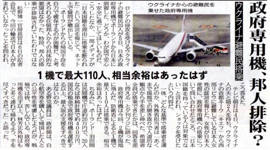 可随后就被滞留乌克兰的日本人锤爆:日本政府派来的专机,最多可以坐110人,却拒绝日本国籍的登记乘机,只带了20个乌克兰人离开。