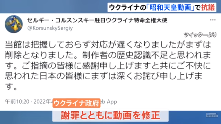 日本政府表示,已通过外交渠道向乌克兰方面表示抗议。但是,支援乌克兰的方针不变。