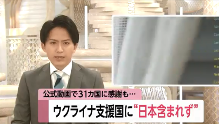 日本人在这上面真的很介意。所以,不介意地成了热点新闻:官方视频感谢31个国家,支援乌克兰的国家里没有包括日本。