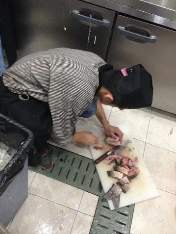 当年,经济还不似现在发达,人们的卫生意识也不比现在。他在打工的寿司店里见到最震惊的画面,是后厨把菜板放地上切鱼。
