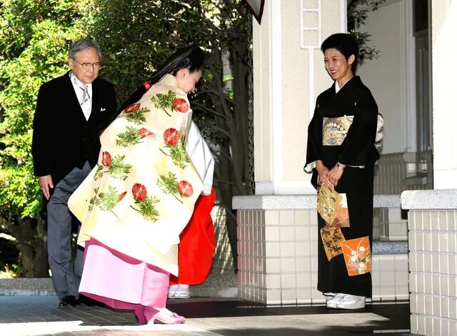 2018年,从宣布准驸马内定人选,到正式结婚,仅用了4个月。这年10月,27岁的绚子嫁给了32岁的守谷慧。