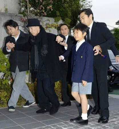 ▲香川父子随老父亲参加梨园大佬的葬礼