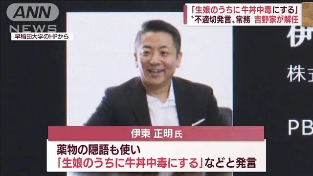 事情一被曝光,4月18日深夜,吉野家紧急决定解除伊东正明的职务。社长减薪30%,并对全公司役员进行“企业伦理”培训。