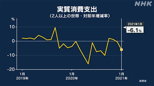 从NHK一年前的新闻里不难看出,自疫情元年的2020年1月开始,人们的消费支出迅速下跌。
