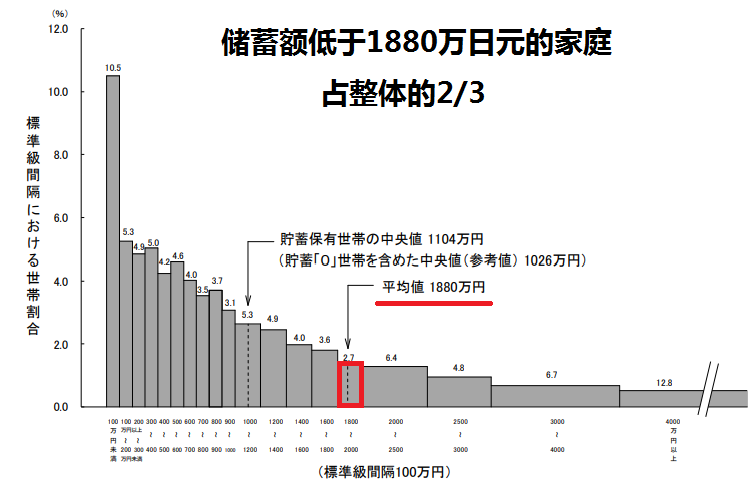 平均储蓄额1880万日元,听起来很多,但低于这个金额的家庭数量占了整体的2/3。