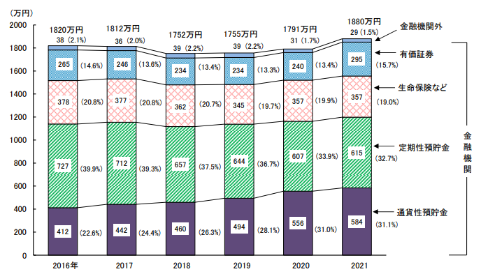 据总务省统计局的调查,2021年受新冠疫情影响,整体上大家都减少了消费支出。比如,外出用餐、旅游等休闲娱乐相关的消费。因此,储蓄金额变多。