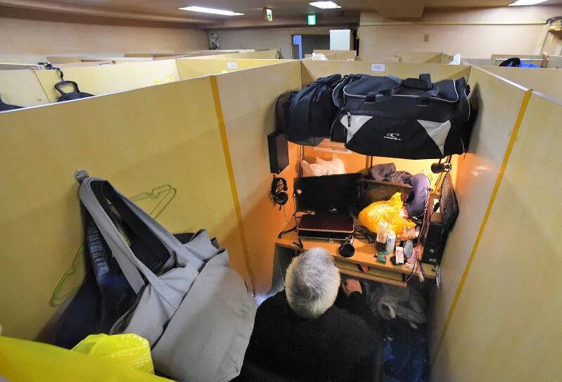 在东京没有落脚地,网咖成了他无可奈何下的选择。不过,住习惯了倒也挺舒服。