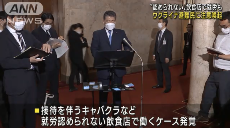 有3名乌克兰女难民来到日本后,被发现在陪酒俱乐部、风俗店等风俗行业上班。