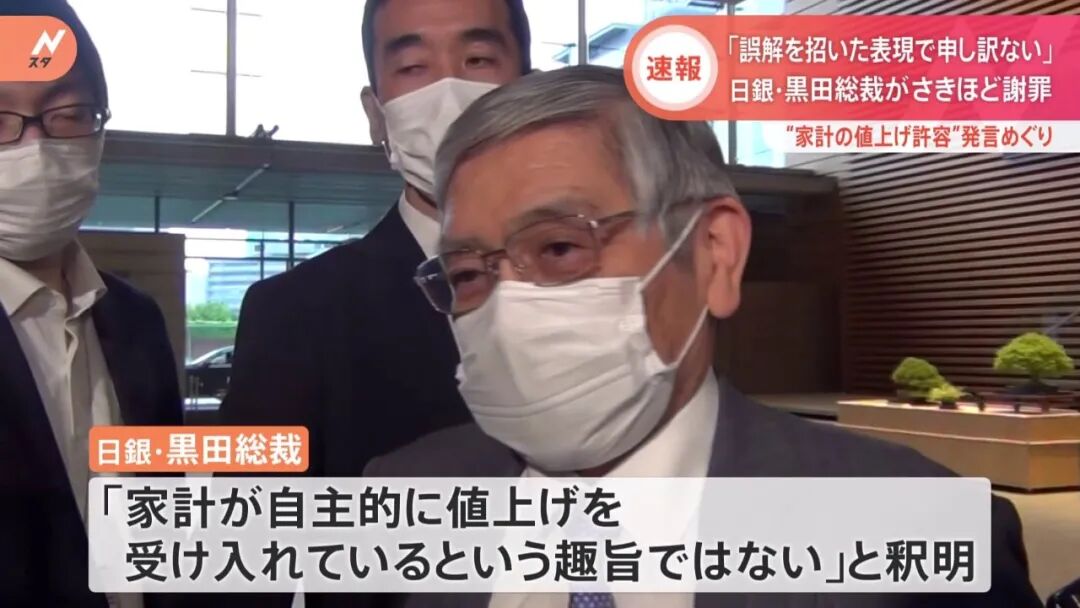 6月8日,黑田赶紧出来收回自己两天前的发言并谢罪。解释称这中间有误会,他并不是想说老百姓们主动接受涨价,是不得不接受。
