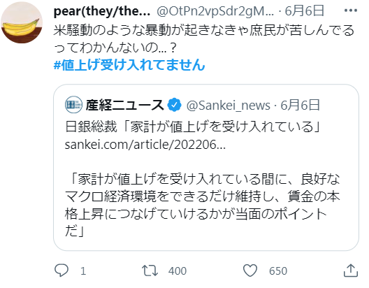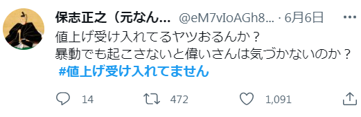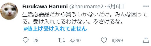日推上,#値上げ受け入れてません /没有接受涨价 的话题当天就炸疯了。
