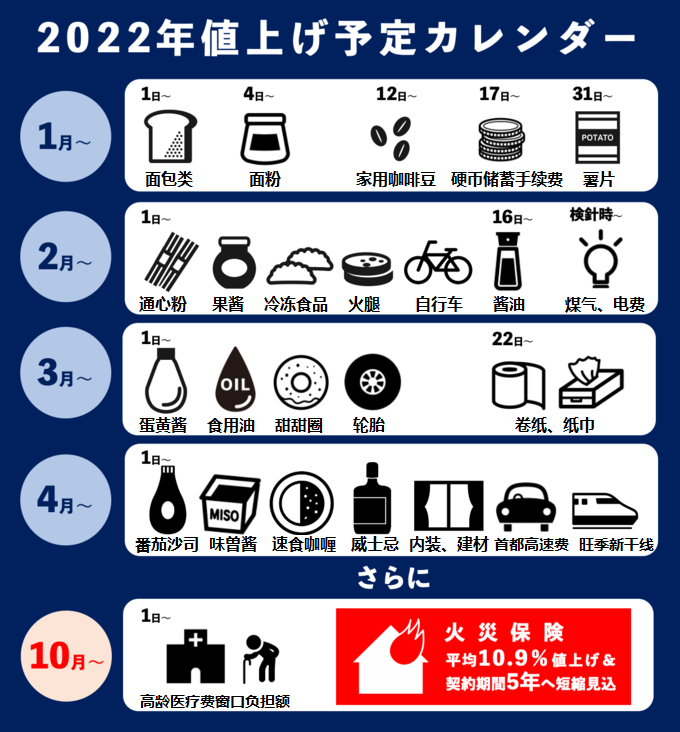 受疫情、石油价、俄乌战事等等的影响,日本国内物价持续飞涨。自进入2022年,日常生活用品的价格就跟上了高速公路一样。这个跑起来,那个也跑起来。