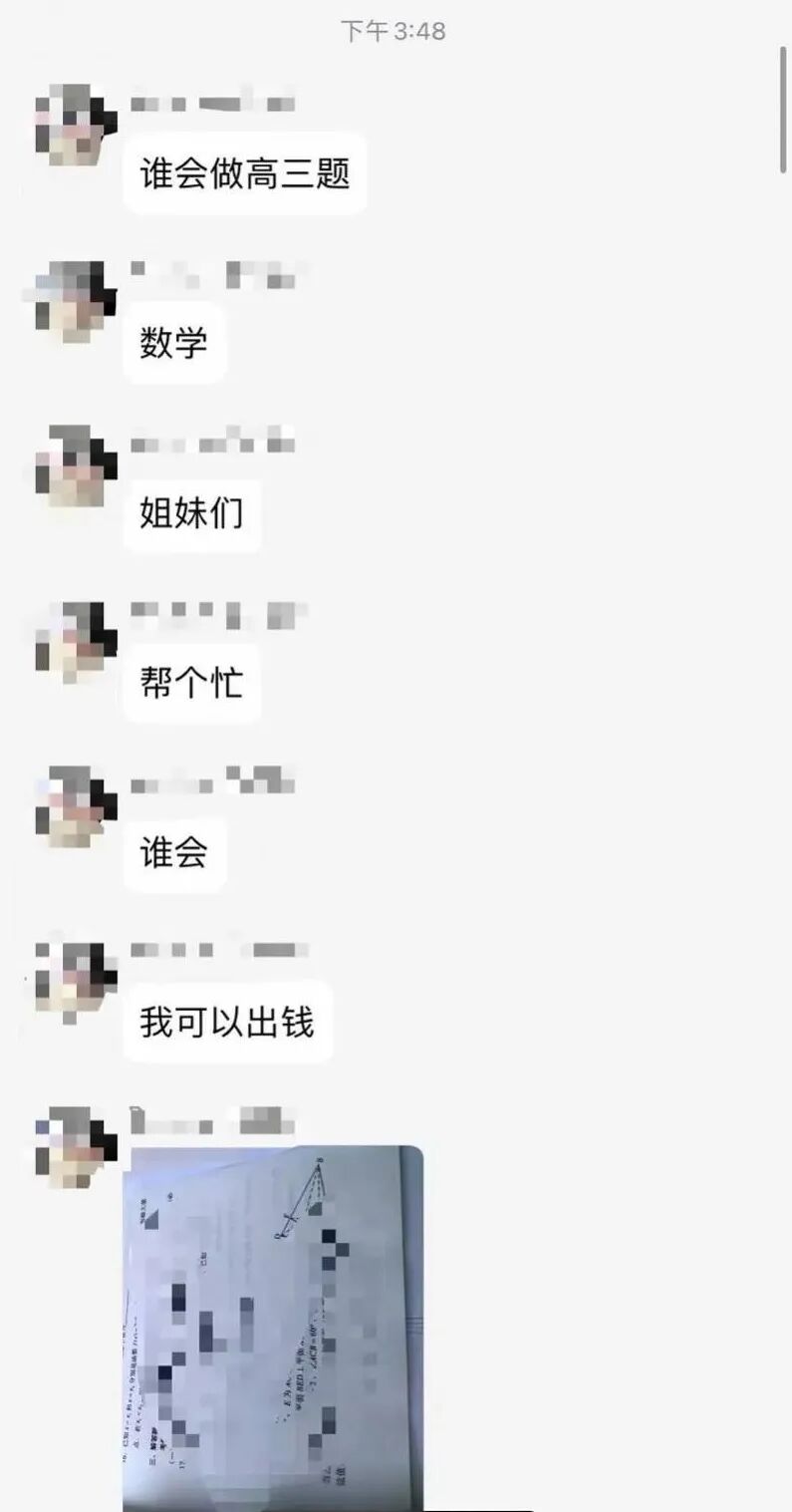 考试途中,他涉嫌将数学试卷拍照,照片被传到外面,希望帮解题。