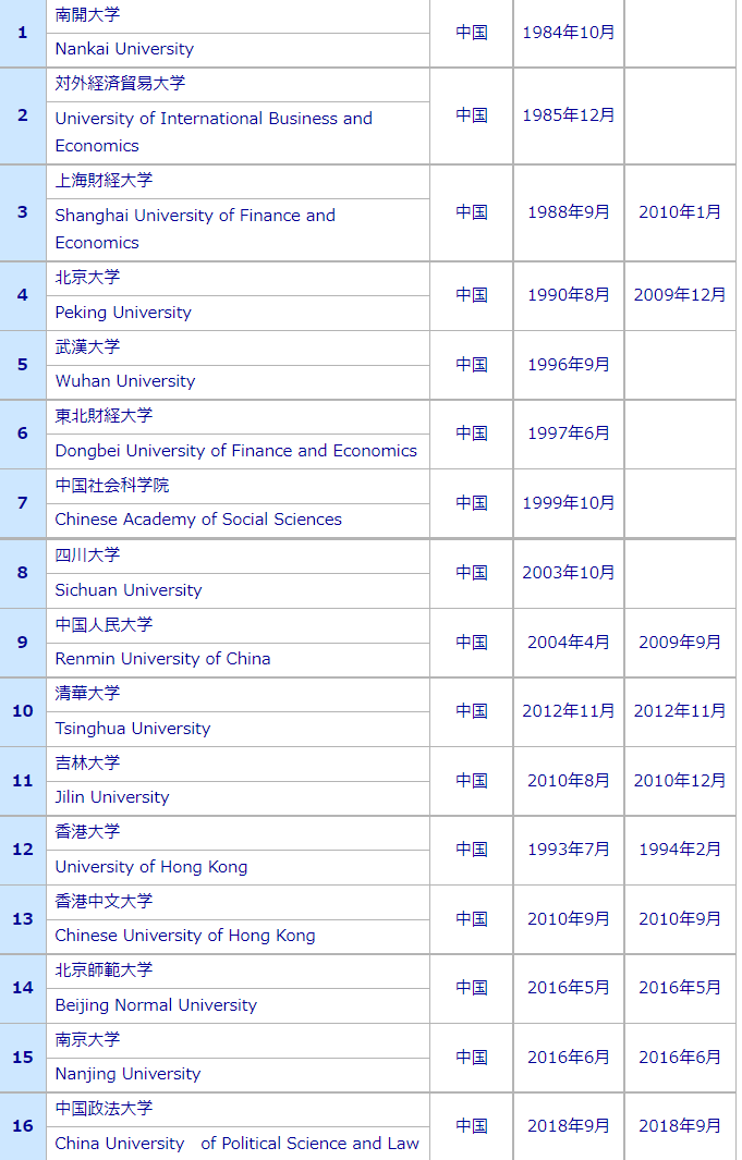 一桥的中国友好大学部分名单