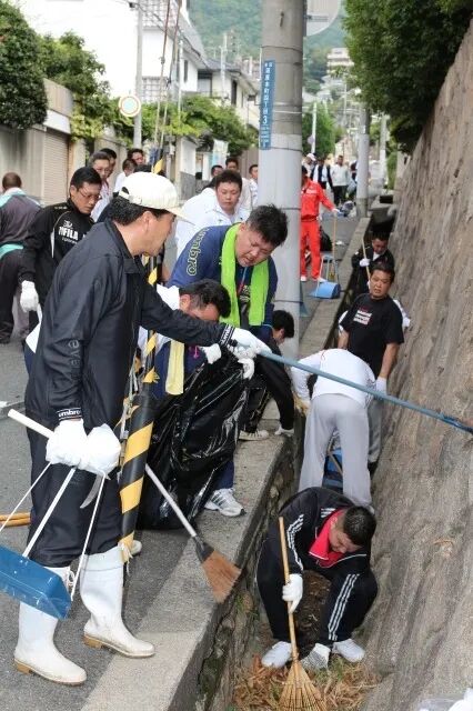 日本居民区一般会组织本地居民定期打扫街道。因为这个传统,黑社会不能参与到普通居民里,他们就自行组织打扫街道。