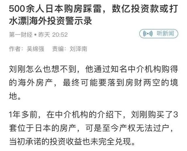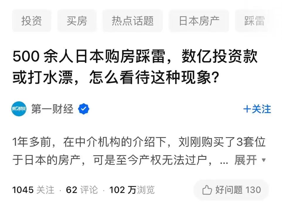近日,《第一财经》一篇名为《500余人日本购房踩雷,数亿投资款或打水漂》的文章引起很大反响。一度登上各平台的话题榜。