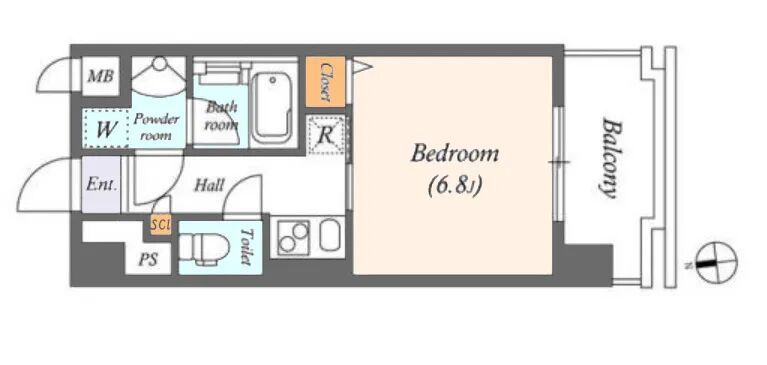 比较典型的小面积出租屋,每月租金设置在6.55~6.6万日元水平线上。