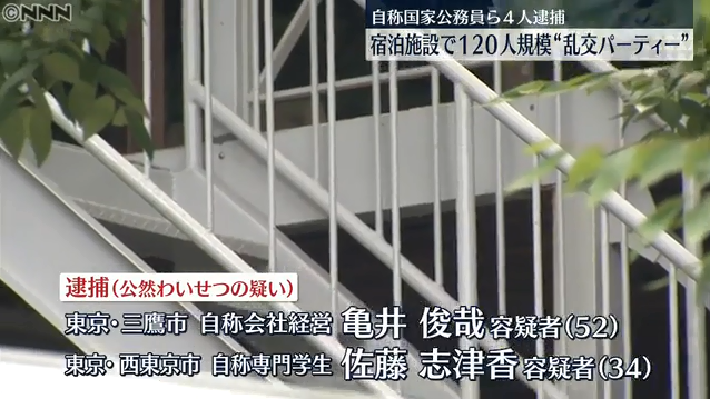 因组织并参加120余人规模的淫乱派对,包括国家公务员在内的4名男女被警方逮捕。