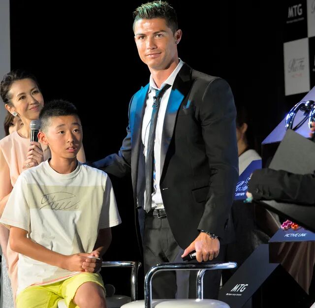 岩冈辽太的老爸偶然在电器店海报上看到这一消息,很激动,因为C罗是儿子的超级偶像。