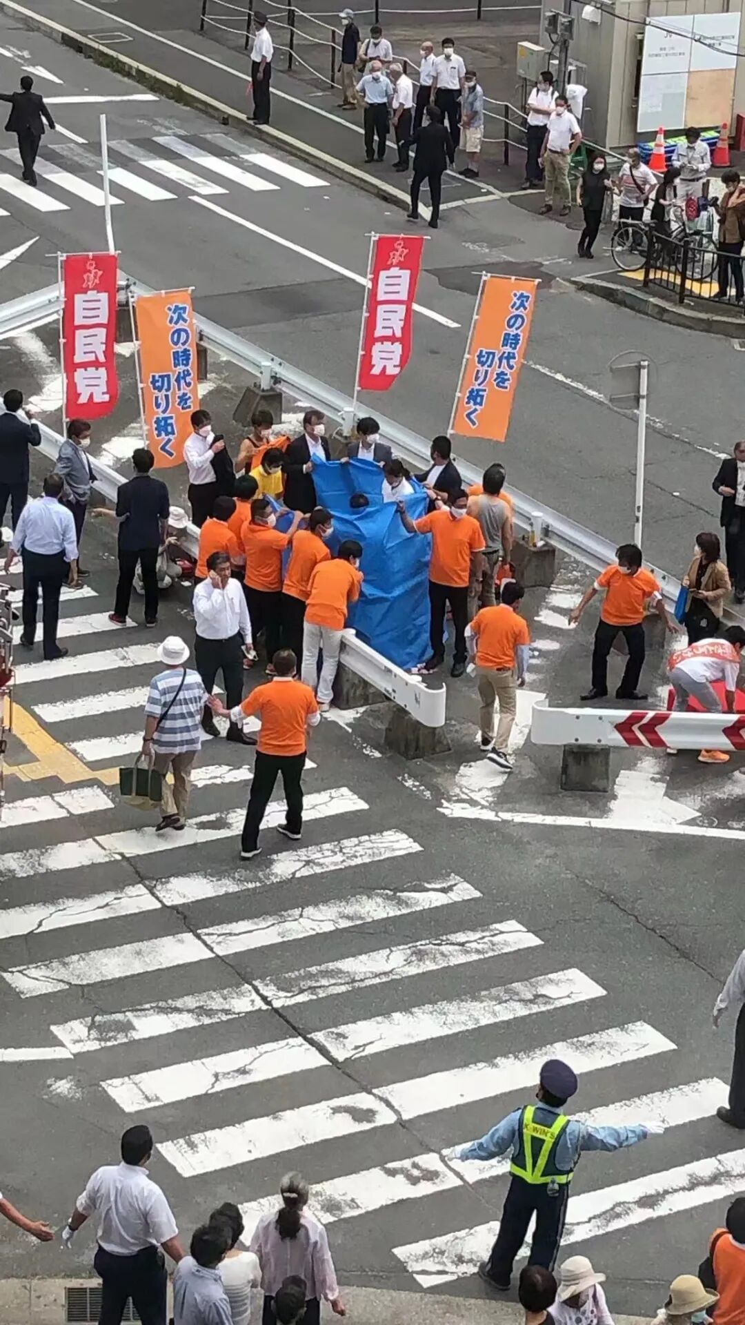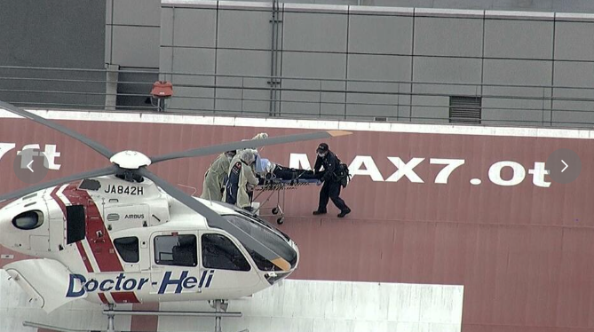 安倍由直升机送往医院急救。此时,人已处于心肺停止状态。