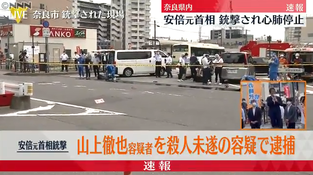 该男子名叫山上徹也,奈良本地人。2005年之前,曾在海上自卫队服役3年。凶手行刺的动机目的不详,在进一步调查中。