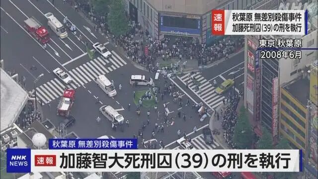 日本执行死刑,行刑当天早晨才通知死刑犯,采用绞刑。2022年7月26日,加藤智大被执行死刑。