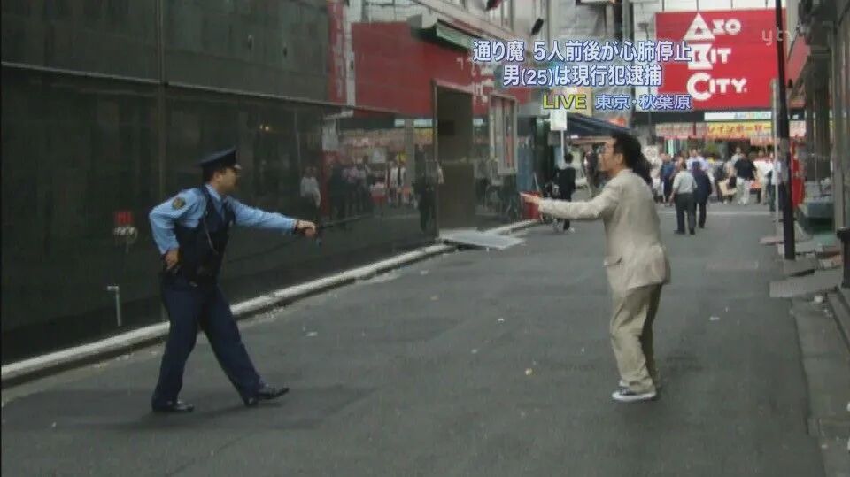 整个过程,被媒体拍了下来。很显然,加藤虽有对峙行为,但压根儿没想过能逃得掉。