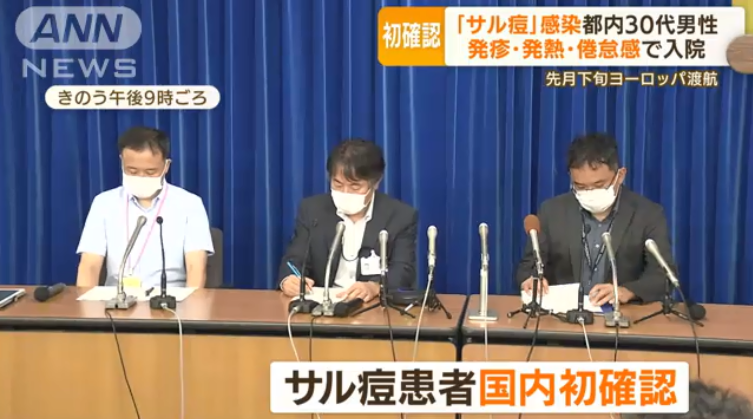 7月25日,日本国内首次确诊猴痘病毒感染例。厚生劳动省召开紧急记者会,说明详情。