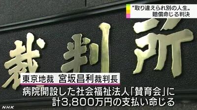 最终,东京地方法院判决赞育会医院赔偿3800万日币。